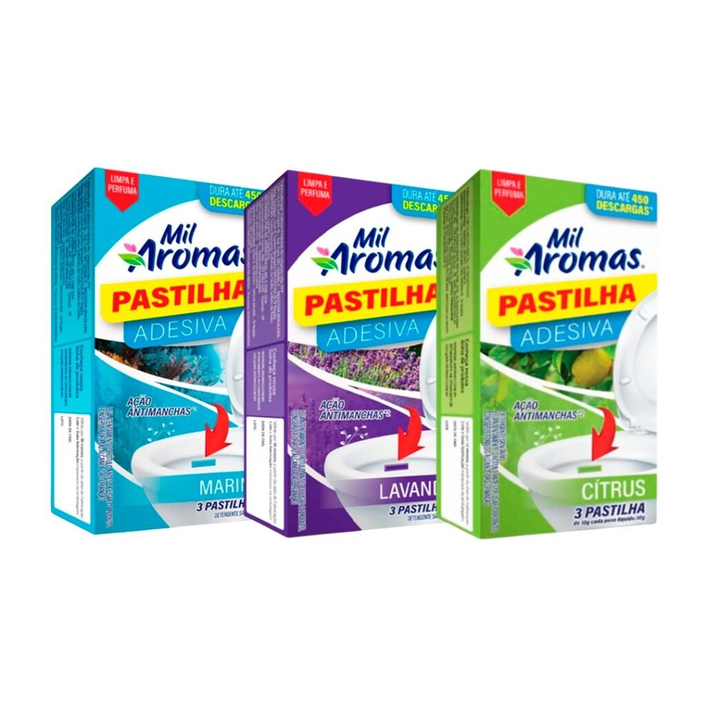 Deixe seu banheiro sempre com um aroma fresco e agradável com a Pastilha Adesiva Mil Aromas. -Produto vem em embalagem encartelada MISTA , disponível nas fragrâncias revigorantes de Citrus, Lavanda e Marine. Cada pastilha adesiva é prática e fácil de aplicar, aderindo diretamente à superfície do vaso sanitário para liberar perfume a cada descarga, mantendo o ambiente limpo e perfumado por muito mais tempo.